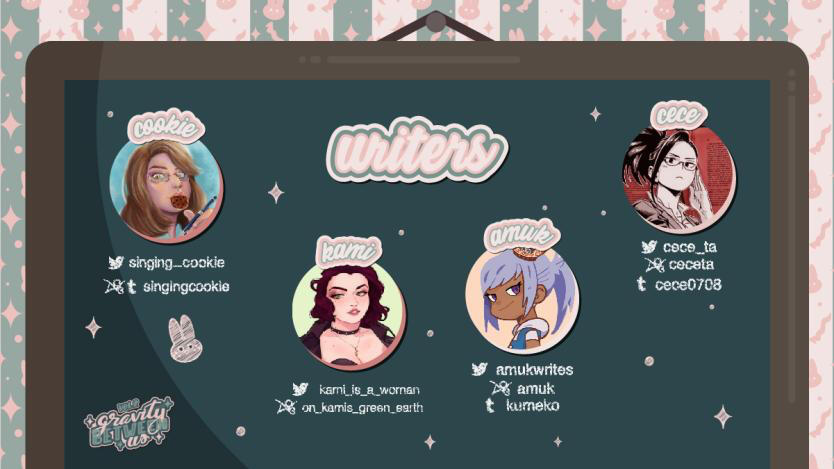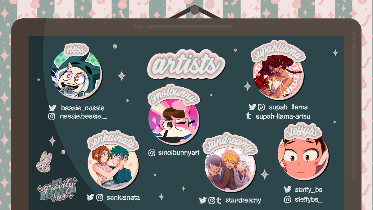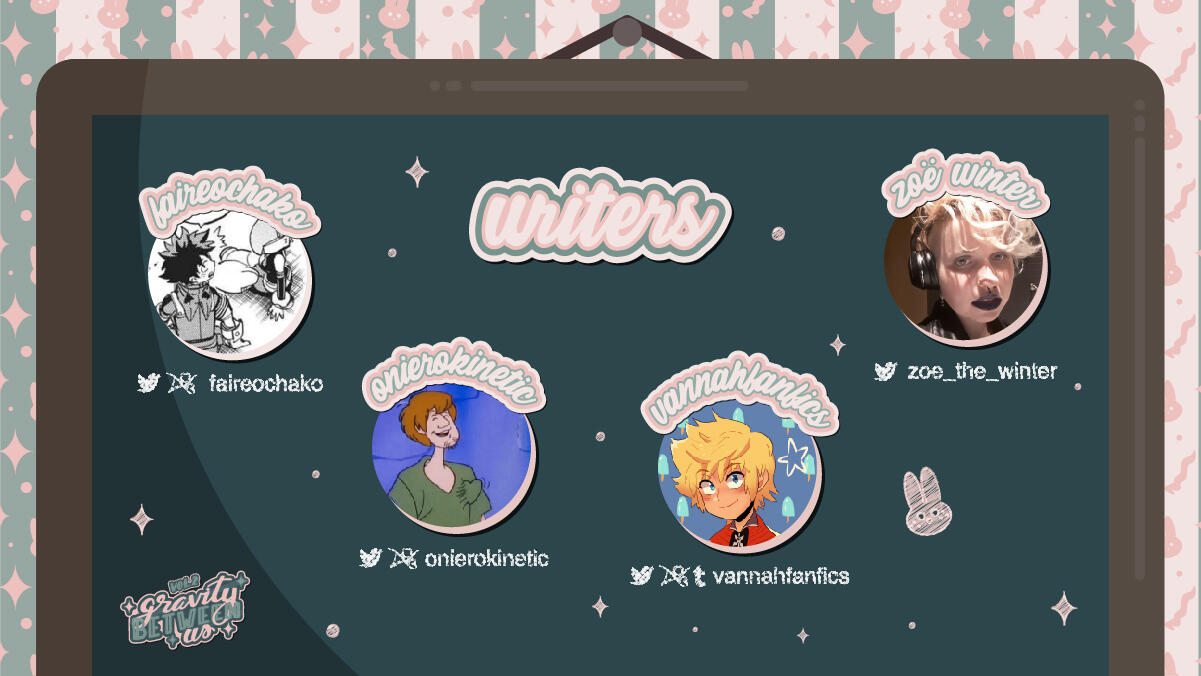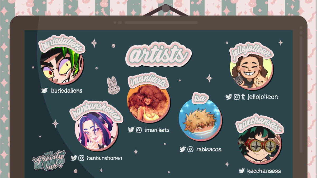 Gravity Between Us Vol 2 is a for charity zine focused on the relationship between Midoriya Izuku and Uraraka Ochako. Volume 2 will be composed solely of AUs and popular tropes. Other characters may make appearances in the project, but the focus of each piece will be on IzuOcha.